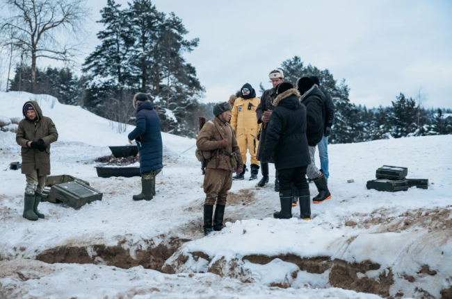 Съемки на зимнем Финском заливе проходят масштабно: команда работает с пиротехникой, сложными каскадерскими трюками и постановочными сценами, которые детально передают атмосферу военного времени. Работа ведется в условиях сурового климата: пронизывающий ветер с воды и постоянный мороз усиливают достоверность происходящего в кадре.